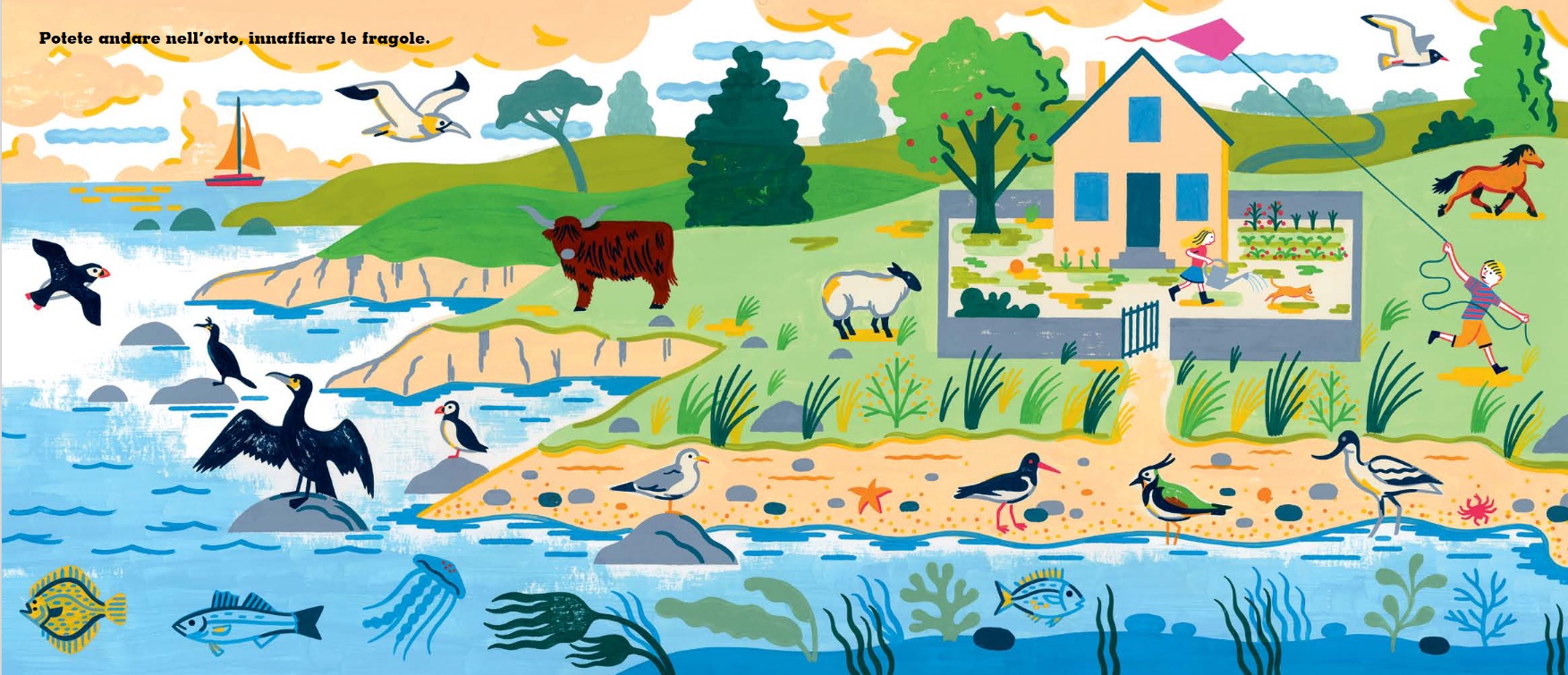 Una storia che traghetta dal domestico al selvatico e ritorno, un libro che si situa tra fiction e non fiction e che quindi si presta a venir letto in vari modi: concentrandosi sull’elemento umano e quindi sul significato ecologico, seguendo solo la narrazione, giocando a trovare gli animali, creando una narrazione fantastica su ogni doppia pagina.