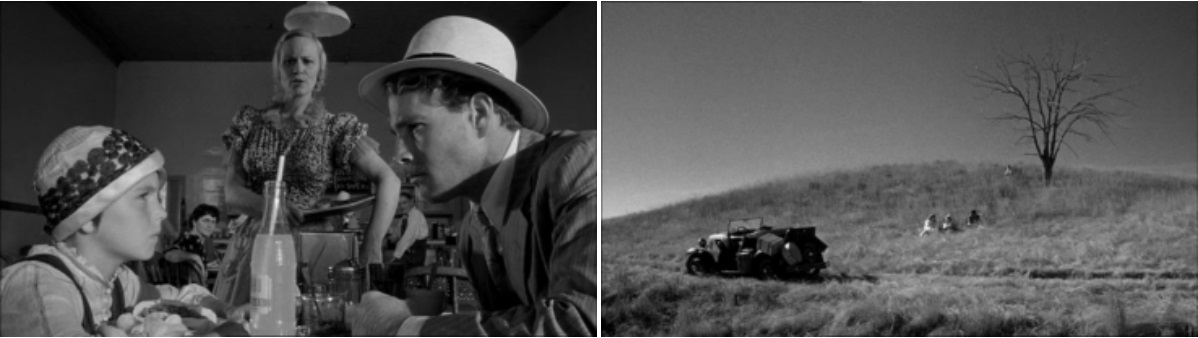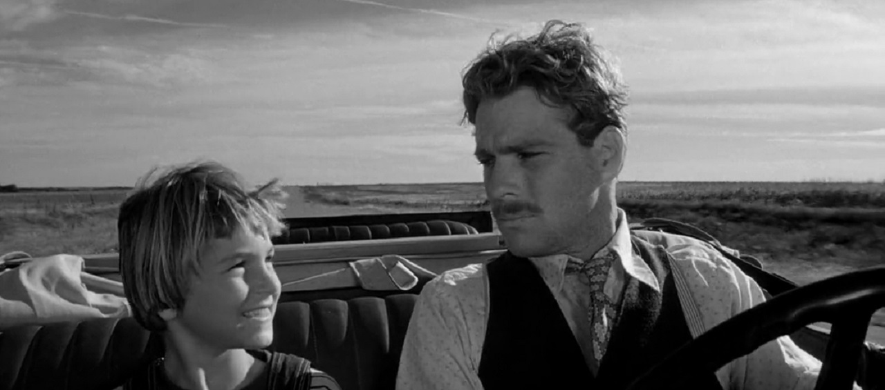 Già dal loro primo confronto e scambio di battute all’interno del locale, veniamo conquistati dal personaggio di Addie: l’aspetto mascolino e il suo modo di fare spigliato e smaliziato che in qualche modo assomiglia a Huckleberry Finn, dietro cui si ripara il lato più fanciullesco e bisognoso d’affetto, la rendono protagonista indiscussa di un rapporto che inizia nel segno dell’indifferenza per arrivare a piccoli passi a una complicità familiare. Lo sguardo del regista, si mette spesso accanto a lei, mostrandoci ciò che accade dalla sua prospettiva: possiamo intuire cosa pensa, quali sono i suoi stati d’animo solo dall’espressione del volto o dal modo in cui guarda le cose (pensiamo a quando tenta di imbrogliare la ricca signora o la vedova con numerosa prole al seguito). La verosimiglianza dello sguardo permette altresì alla narrazione di calarsi in una realtà sospesa tra la vita e la commedia, dove anche un periodo buio come la grande depressione, può diventare l’occasione per due simpatiche canaglie di rimpinguare le loro misere finanze e con esse le loro solitarie esistenze.
