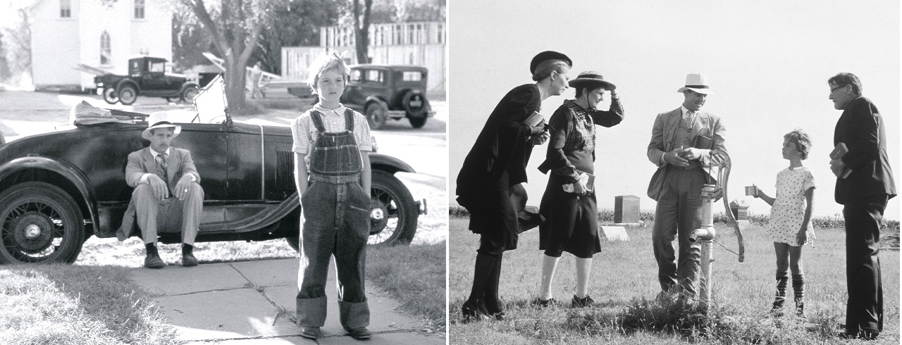 Per questo, Paper moon di Peter Bogdanovich non è solo un film ma anche un stetoscopio che misura il battito delle cose e si configura a tutti gli effetti come un meta-film, uno studio sul linguaggio del cinema; è una storia universale non tanto per le scene perfette, o per la bravura magistrale di Ryan O’Neal (due anni dopo l’uscita del film lo vedremo interpretare Barry Lyndon) e di Tatum O’Neal (che si è presa l’Oscar per questo film e che nella realtà è la vera figlia di Ryan), quanto per l’incredibile ritratto che il regista fa dell’infanzia, della sua forza, della sua capacità di costruirsi una morale basandosi sulla verità che sta dietro le apparenze. Girato nel 1973 in un superbo bianco e nero (fu Orson Welles che consigliò al regista di mettere un filtro rosso agli obiettivi per rendere più intensi i contrasti), racconta l’amicizia tra Moses, un furfantesco venditore di bibbie ed Addie, orfana di una madre prostituta, durante la grande depressione americana, alla fine degli anni ’20. Il giorno del funerale della madre di Addie, Moses si presenta rubando un mazzo di fiori a una tomba vicina: è un ex-amante della donna morta e forse padre della bambina. I pochi presenti al funerale gli chiedono di riportare Addie da una zia che vive a Saint Joseph nel Missouri a poche centinaia di chilometri di distanza. L’uomo accetta controvoglia e inizia il lungo viaggio che vedrà Moses e Addie diventare una coppia inseparabile.